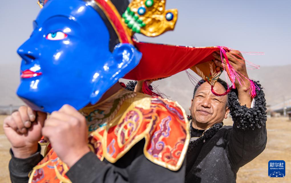 在拉萨市达孜区雪乡民间传统手工艺农民专业合作社的小院里,拉萨布制面具制作技艺西藏自治区级非遗传承人西洛和徒弟们忙得热火朝天,他们正在制作面具。面具制作工序繁杂,制作一个面具包括雕刻、分层、风干和喷漆等十几道工序。