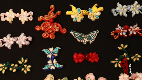 盘扣是中国传统服装特有的工艺饰品,用来固定衣襟、点缀装饰。山东省枣庄市市中区盘扣手艺人在传统制作工艺的基础上,融入现代时尚元素,创新添加了金丝、串珠等工艺,通过开条、扣条、烫条、盘条等多种手法,纯手工编制出蝴蝶扣、梅花扣、枫叶扣、同心结扣等造型各异的盘扣,充分展现了中国传统美学的魅力。