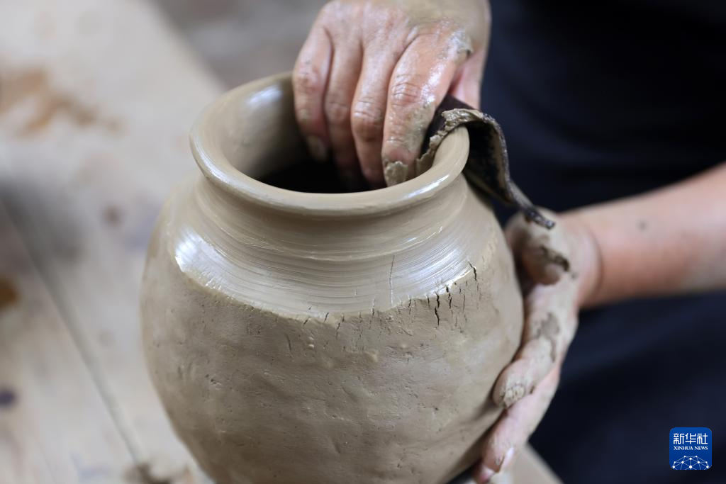 9月14日,在墨西哥瓦哈卡州的圣巴托洛科约特佩克市,一名黑陶手工艺者给陶罐进行抛光。