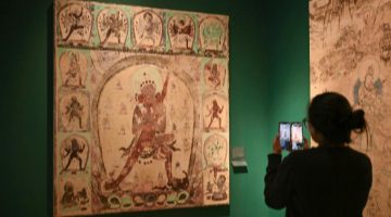 这是展出的铜镀金乐箱水法跑人双马驮钟(11月3日摄)。