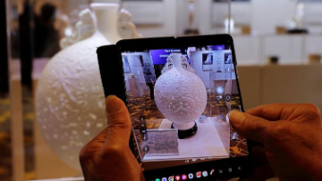 12月10日,观众在中国美术馆观赏展出作品《虹竹》。