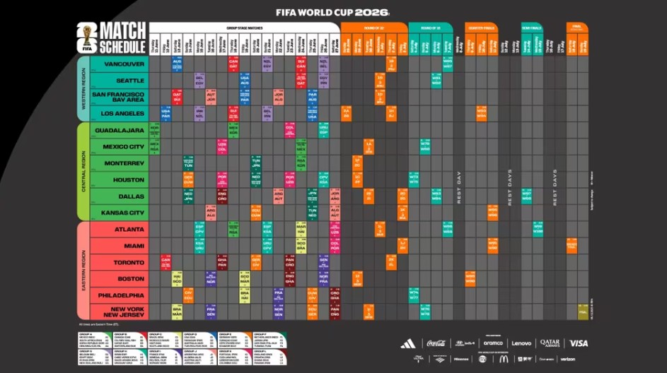 国际足联称:“赛程的设计核心是尽量减少球队与球迷的旅行距离,并最大化各队比赛间的休息天数。现已确定的场馆分配和开球时间旨在优化球员与球迷的身心条件,同时让全球不同时区的观众都能更好地观赛。”