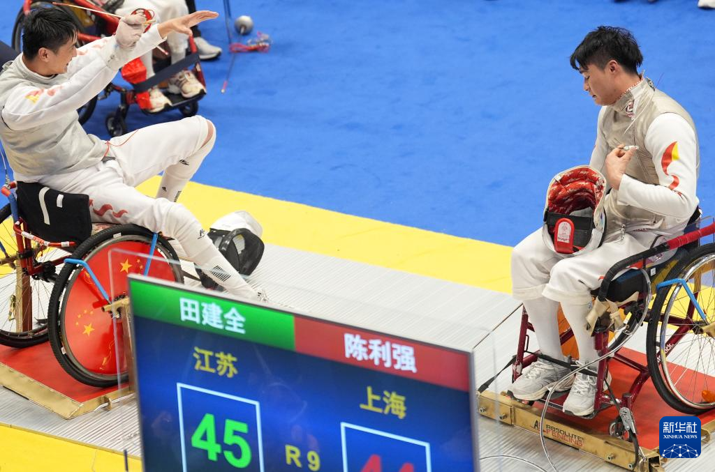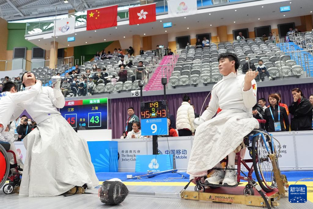 全国第十二届残疾人运动会暨第九届特殊奥林匹克运动会轮椅击剑项目比赛在香港马鞍山体育馆举行。