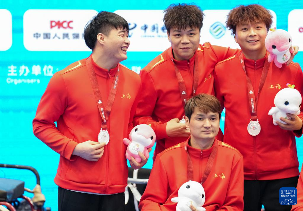 12月10日,在男子佩剑团体颁奖仪式上,陈利强(左一)与队友合影。