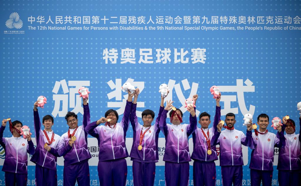 12月15日,香港一团队获得特奥足球队制比赛A组冠军。新华社记者 隋尚君 摄