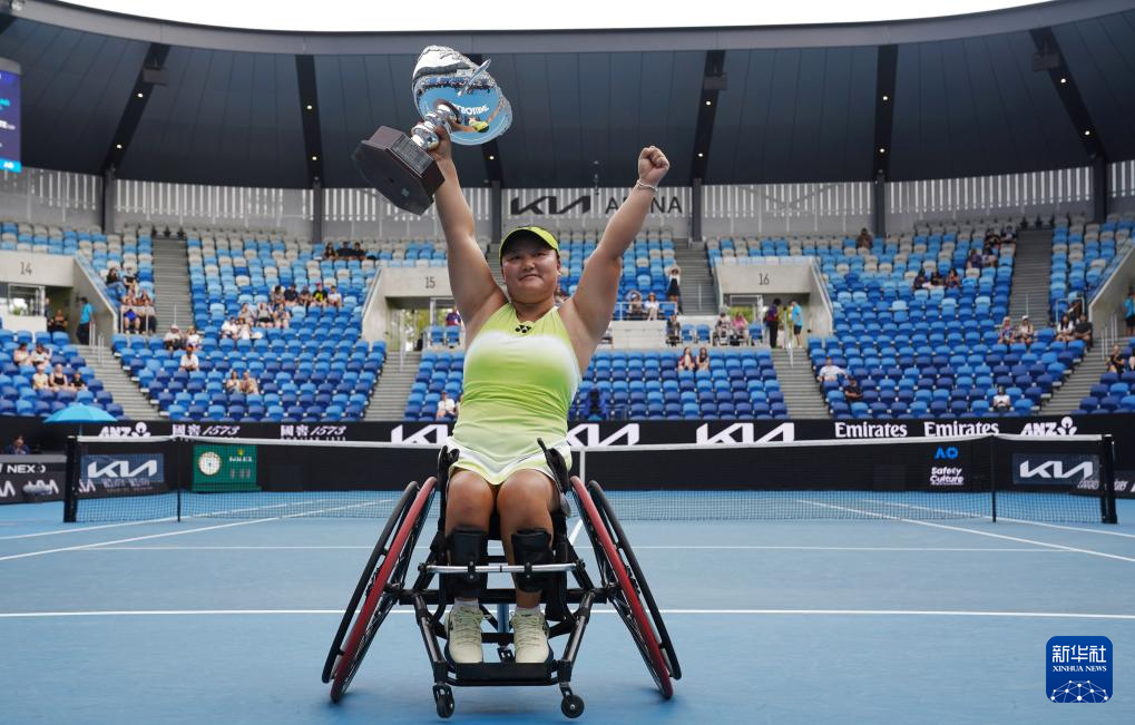 当地时间1月31日,在澳大利亚墨尔本进行的2026年澳大利亚网球公开赛轮椅网球女子单打决赛中,中国选手李晓辉2比0战胜荷兰选手德格鲁特,夺得冠军。