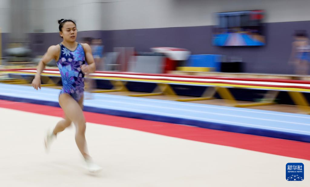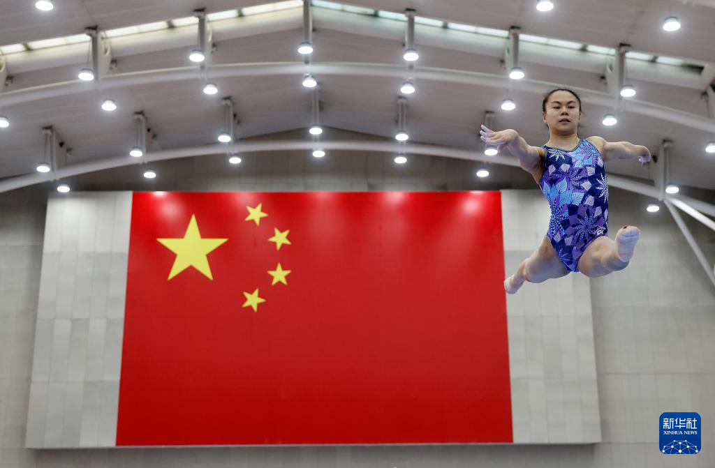 1月31日,张清颖在高低杠训练中。