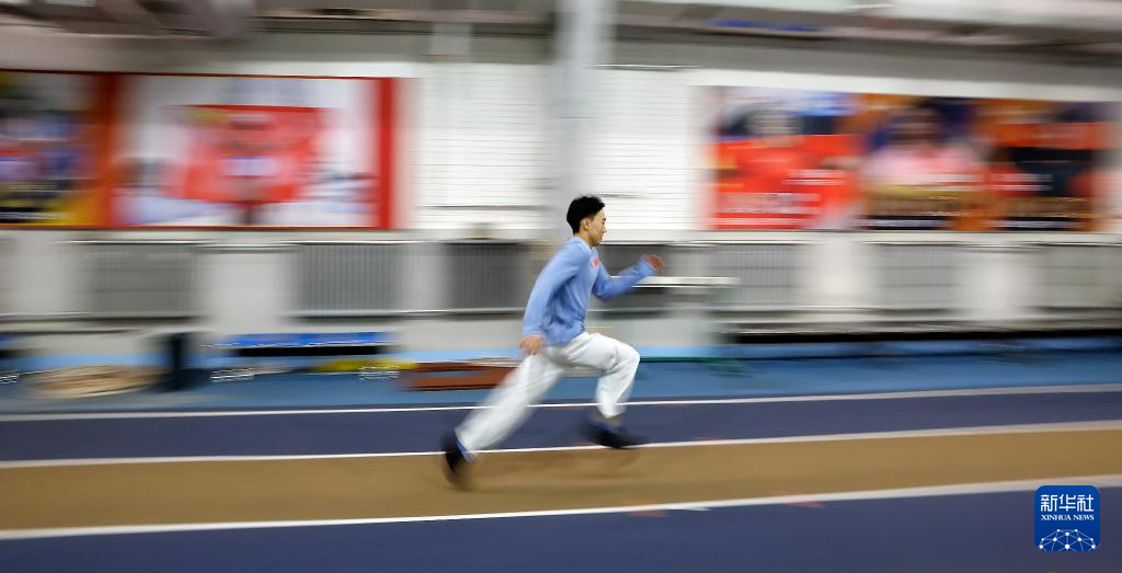 1月31日,洪延明在30米跑的体能测试中。