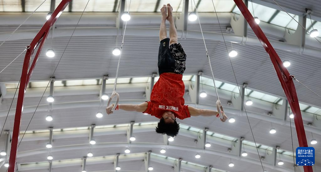 1月31日,张博恒在吊环训练中。