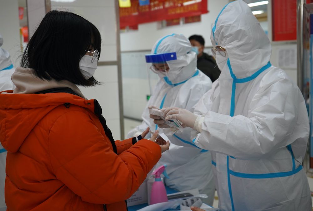 ↑1月7日,在石家莊市新華區(qū)錦繡乾城社區(qū),醫(yī)務(wù)人員在核酸采樣現(xiàn)場工作。