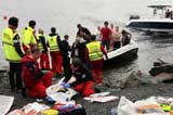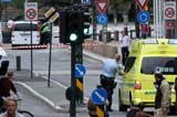 挪威警察從爆炸現(xiàn)場(chǎng)抬出受傷人員