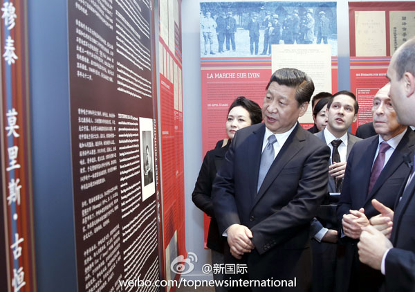 ????新華網北京3月27日電 據新華社“新國際”微博報道,習近平26日在參觀里昂中法大學時表示,里昂中法大學培養了許多新中國建設的領軍人物,又為中國改革開放事業培養了各類人才。目前,中法互派留學生規模接近5萬人。相信里昂中法大學所承載的中法友好精神會代代相傳,不斷發揚光大。