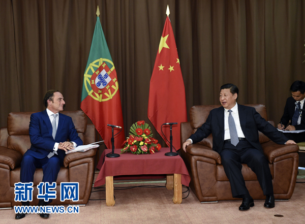 ????波塔斯表示,葡中兩國成功解決了澳門問題,為國與國之間解決歷史遺留問題樹立了榜樣。前幾年,當葡萄牙面臨經濟困難時,中方向我們提供了寶貴支持和幫助,我們感謝中國。葡方贊賞中國夢,相信中國將為促進世界和平與發展發揮越來越重要的作用。葡萄牙愿意發展同中國的全面戰略伙伴關系,加強政治對話,擴大經貿、投資、海洋、旅游等領域合作。葡萄牙經濟正在好轉,歡迎中國企業積極參與其中。葡方愿意積極促進歐盟同中國關系發展。波塔斯祝賀習近平拉美之行取得成功,表示葡方愿意利用自身優勢,同中方加強在拉美、非洲事務中的合作。