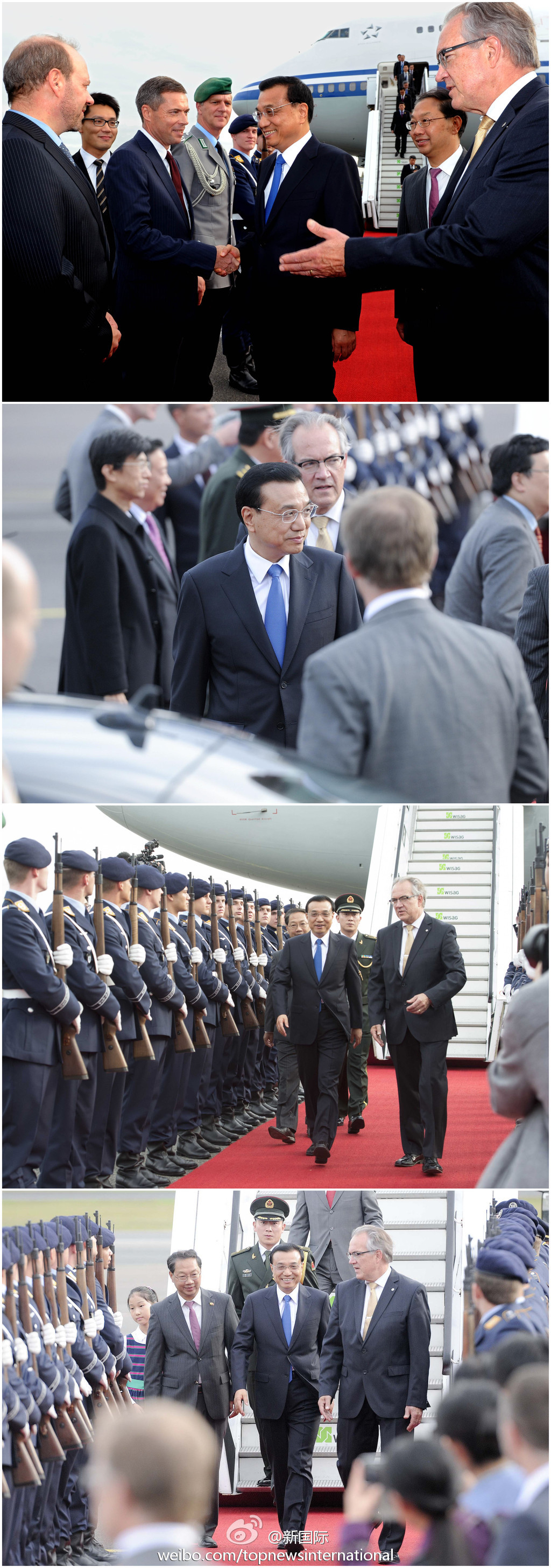 ????新華網北京10月10日電? 據新華社“新國際”微博報道,李克強總理9日抵達柏林開始正式訪德。他將會見德國領導人,與默克爾總理共同主持第三輪中德政府磋商,就雙邊關系及共同關心的問題深入交換意見,增強戰略互信,規劃經貿、創新等各領域中長期合作,厚植民間友誼,推動中德關系在高起點上取得新發展。