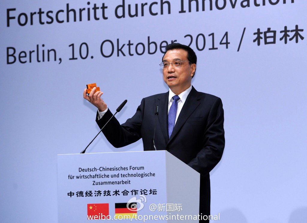 ????新華網北京10月11日電? 據新華社“新國際”微博報道,10日的中德經濟技術論壇上,李克強總理將一精巧的魯班鎖送給默克爾。他說,這是天津中德職業技術學院師生共同創作的作品,希望我送給默克爾總理。解開魯班鎖是解決一道難題,相信中德之間的合作能不斷創新,共同破解世界性難題,開啟美好的未來。