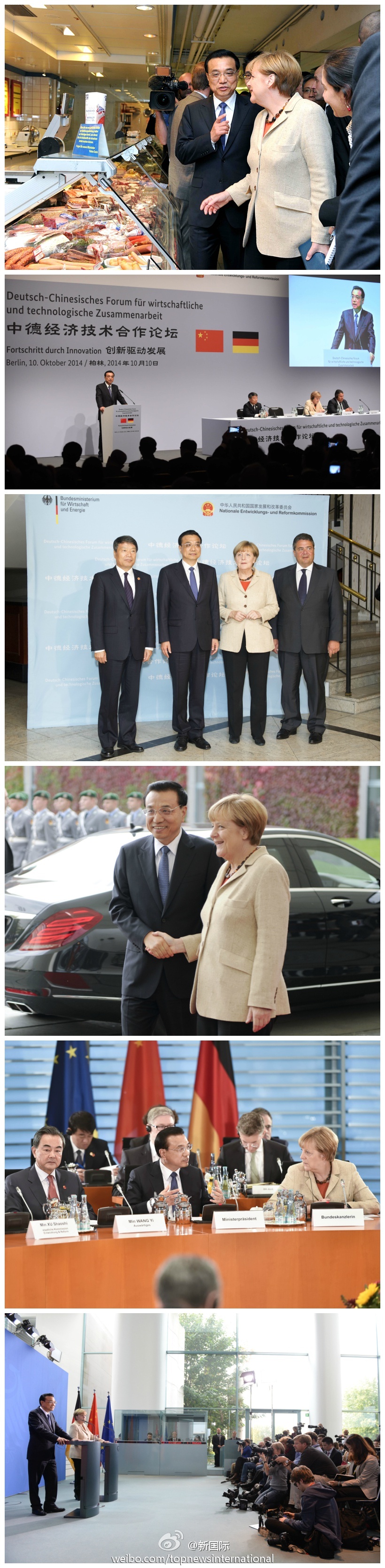 ??? 新華網(wǎng)北京10月11日電? 據(jù)新華社“新國(guó)際”微博報(bào)道,10日,李克強(qiáng)對(duì)德國(guó)訪問(wèn)日程異常繁忙。兩國(guó)總理共同主持了規(guī)模空前的第三輪中德政府磋商,出席了中德經(jīng)濟(jì)技術(shù)論壇、簽字儀式,共見(jiàn)記者,參觀皇家瓷器廠……當(dāng)天默克爾同李總理一起出席了12場(chǎng)活動(dòng),長(zhǎng)達(dá)10個(gè)小時(shí)的深度會(huì)晤,共同規(guī)劃中德務(wù)實(shí)合作升級(jí)版。