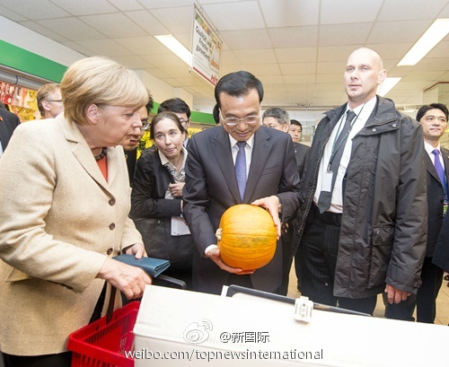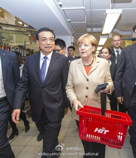 結賬時,默克爾讓李克強總理先走,自己停下來付錢,隨后轉身與他一起離開。兩位總理結束了短暫的超市之行,到酒店準備出席第七屆中德經濟技術合作論壇。