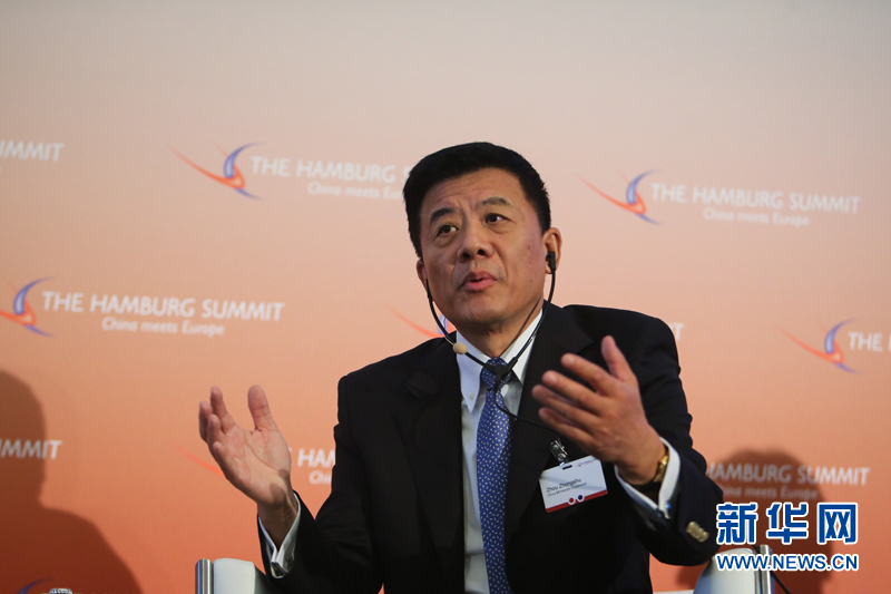 ??? 10月11日,在德國漢堡舉行的中歐論壇漢堡峰會(huì)上,中國五礦集團(tuán)公司董事長(zhǎng)周中樞發(fā)言。中歐論壇漢堡峰會(huì)第六屆會(huì)議11日在德國漢堡閉幕。本屆峰會(huì)以“中國與歐洲相遇”為主題。來自中歐政治、經(jīng)濟(jì)和學(xué)術(shù)界的500多位代表聚集在一起,探討中歐經(jīng)貿(mào)合作未來趨勢(shì)、中國經(jīng)濟(jì)的綠色發(fā)展等重要議題。新華社記者張帆攝