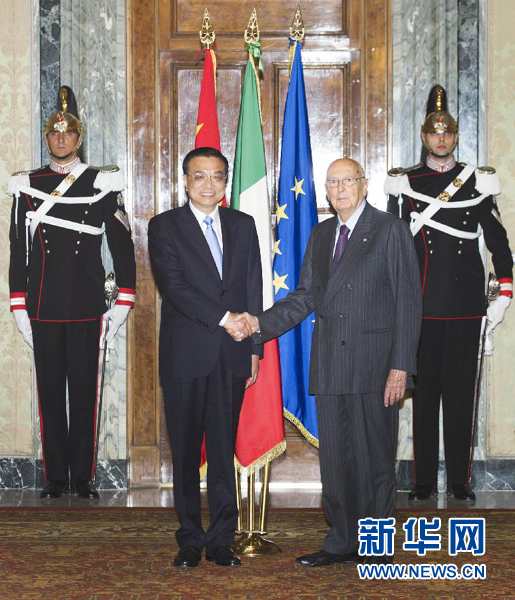 10月14日,國務院總理李克強在羅馬總統府會見意大利總統納波利塔諾。 新華社記者 謝環馳 攝