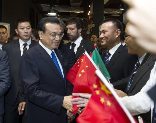 今天的活動中,克強總理結束致辭離開會場時,正好從董柔心身旁走過。她抓住時機,用中文同克強總理打招呼。這招也成功地引起了克強總理的注意。克強總理不僅夸她中文說得不錯,還欣然應允了合影的要求。一旁的倫齊連忙“貼心地”拿過董柔心的手機,幫他倆拍下了合影。