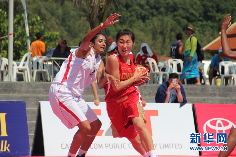 ??? 11月16日,中國沙灘籃球運動員房玲玲(右)在比賽中。中國體育代表團16日在泰國普吉舉行的第四屆亞洲沙灘運動會上勇奪2枚金牌和2枚銅牌。當天比賽全部結束時,中國隊以3金2銀5銅的成績暫列獎牌榜第五。新華社發(塔納攝)
