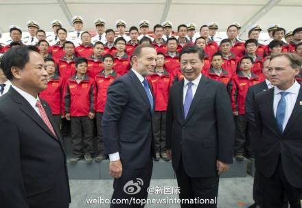 ????新華網(wǎng)北京11月18日電 據(jù)新華社“新國際”微博報道,藍天白云,景色宜人。習近平主席18日在澳大利亞塔斯馬尼亞州訪問時來到霍巴特港,在阿博特總理陪同下登上正在這里補給的“雪龍”號極地科考船,在甲板上和全體隊員合影,向大家問好。“這里離南極有多遠?”“走幾天?”合完影后,他佇立甲板,關切詢問有關情況。