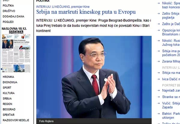 ????在第三屆中國-中東歐國家領導人會晤前夕,中東歐國家主流媒體對中國國務院總理李克強進行了聯合書面采訪,包括馬其頓《日報》、保加利亞《標準報》、克羅地亞《晨報》、斯洛文尼亞《日報》、匈牙利《匈牙利民族報》、斯洛伐克《真理報》、波蘭《共和國報》等在內的紙媒均整版刊發了對李克強的聯合采訪稿。