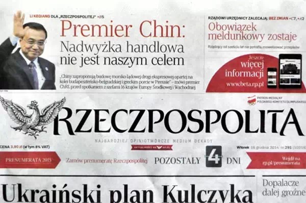 ????波蘭《共和國報》刊登對李克強聯合書面采訪稿件