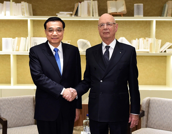 不顧旅途勞頓,克強總理剛下榻酒店就會見了施瓦布,并應邀出席小范圍晚宴。