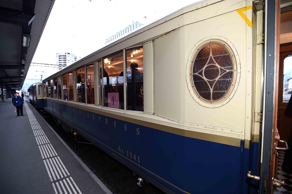前往達沃斯通常乘坐的紅色窄軌小火車很有特色。克強總理此次乘坐的專列是瑞方鐵路公司專門用于租借的,充當過不少國家領導人的專列,顏色不同于普通小火車的紅色,而是藍白配色的。