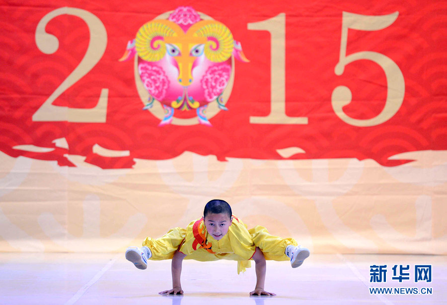 2月4日晚,在烏茲別克斯坦首都塔什干突厥宮,藝術家在表演中國武術和舞蹈。新華網記者 沙達提 攝