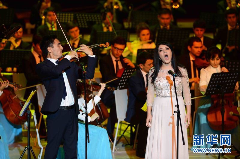 ????3月25日晚,烏茲別克斯坦首都塔什干“烏茲別克斯坦國際論壇宮”,由烏茲別克斯坦文化體育部等多個部門聯合組織舉辦的“春天交響曲”音樂晚會在首都塔什干“烏茲別克斯坦國際論壇宮”精彩上演,烏茲別克斯坦青年藝術家們向來自烏科學、文化、藝術和體育等各界人士代表、駐烏外國使節(jié)和國際組織代表以及前來參加烏總統選舉的國際和國內觀察員近2500余名觀眾獻上一場世界著名交響曲和烏茲別克斯坦傳統民族音樂融為一體的精彩音樂盛宴。新華網記者沙達提 攝