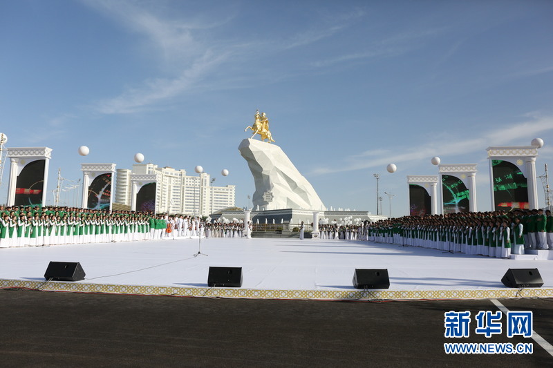 新華網阿什哈巴德5月26日電(記者盧敬利)土庫曼斯坦總統別爾德穆哈梅多夫金色雕像落成儀式25日在阿什哈巴德舉行,多座路中央雕塑也在當日舉行了落成慶典儀式。
