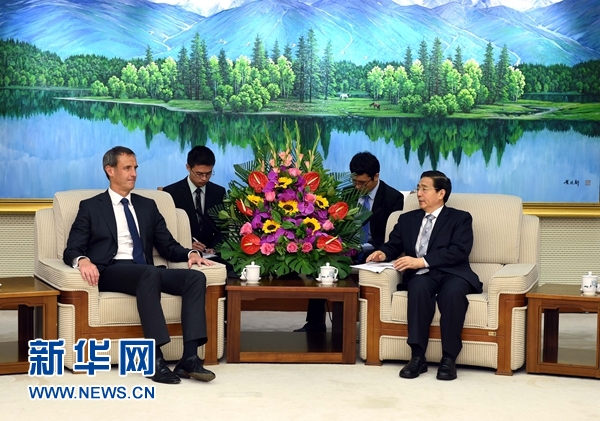 5月28日,國(guó)務(wù)委員、公安部部長(zhǎng)郭聲琨在北京會(huì)見(jiàn)歐洲警察署署長(zhǎng)溫賴特。 新華社記者 饒愛(ài)民 攝