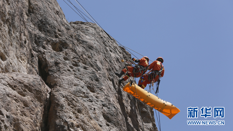 6月3日,代表中國參加上合組織國際救援聯合演練的新疆消防總隊隊員在哈薩克斯坦阿拉木圖州塔姆卡壘塔斯景區的哈內務部緊急情況委員會教練基地“巖石城-阿斯塔納”參加演練。新華社記者沙達提攝