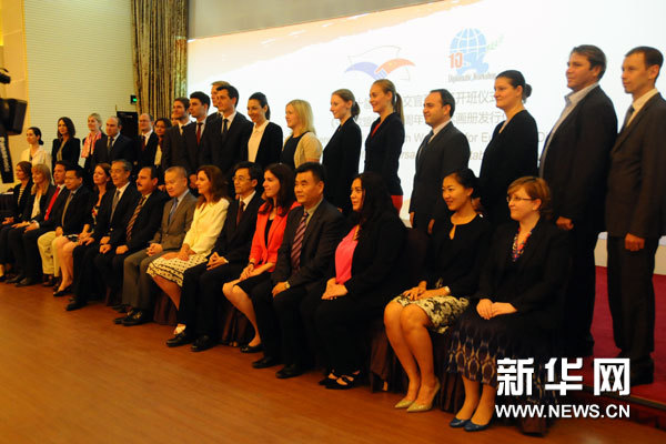 ??? 7月16日,第十屆歐洲外交官研討班開班儀式暨《中國歐盟建交40周年》紀(jì)念畫冊發(fā)行儀式在京舉行,圖為學(xué)員們在開班儀式上合影。新華網(wǎng)記者 張藝 攝