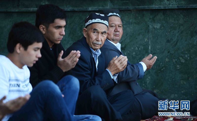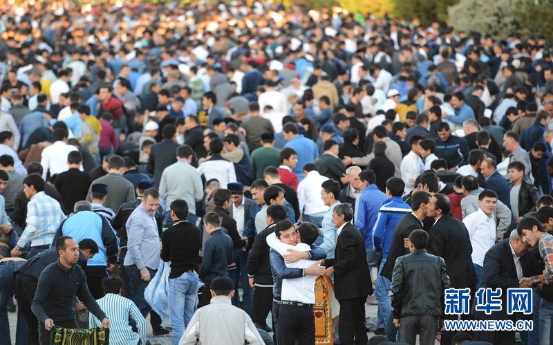 9月24日,在烏茲別克斯坦首都塔什干哈斯特·伊瑪姆建筑群清真寺廣場,人們參加古爾邦節禮拜。當天,烏茲別克斯坦各地慶祝伊斯蘭教傳統節日古爾邦節?!肮艩柊罟潯币喾Q“宰牲節”,是伊斯蘭教三大節日之一。 新華社記者沙達提 攝