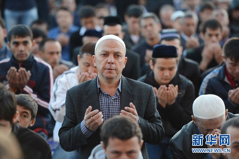9月24日,在烏茲別克斯坦首都塔什干哈斯特·伊瑪姆建筑群清真寺廣場,人們參加古爾邦節禮拜。當天,烏茲別克斯坦各地慶祝伊斯蘭教傳統節日古爾邦節。“古爾邦節”亦稱“宰牲節”,是伊斯蘭教三大節日之一。 新華社記者沙達提 攝