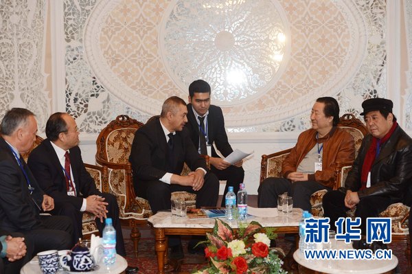 楊曉陽在烏對外友協總部向副主席伊山霍加耶夫多年來對于中、烏兩國美術交流活動所給予的一貫支持表示衷心的感謝。楊曉陽說,盡管這是他本人第一次應邀訪問烏茲別克斯坦,但在此之前,他已在北京與烏對外友協主要成員有過多次接觸,而烏對外友協在2014年為由中國國家畫院前任院長、中國當代山水畫派代表人物龍瑞先生親自帶隊赴烏茲別克斯坦執行“絲綢之路美術創作工程寫生活動”中所提供的協助,更是給他留下了深刻的印象。楊曉陽說,在中國國家領導人的關心以及文化部、中宣部的領導下,中國國家畫院即將啟動“一帶一路國際美術工程”,希望烏對外友協對此能夠給予一如既往的積極參與和大力支持。