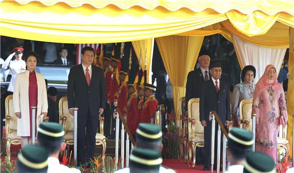 圖為2013年10月4日,習近平出席馬來西亞最高元首舉行的歡迎儀式。(龐興雷攝)
