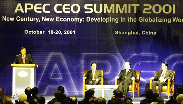 2001年10月18日APEC工商領導人峰會在上海舉行。