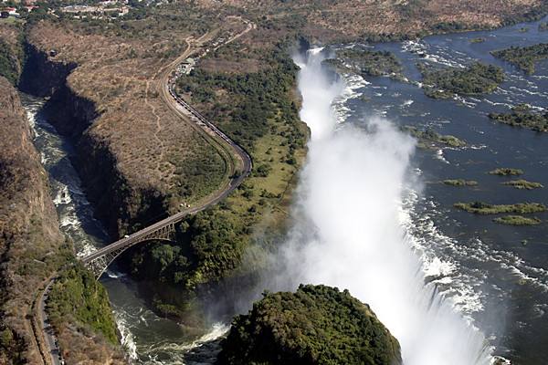 1855年蘇格蘭探險家利文斯通作為第一個踏足此地的歐洲人曾感嘆道,瀑布之壯觀讓“從上方飛過的天使目不轉睛”。