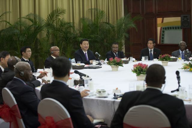 2013年3月28日,習(xí)近平在南非德班同非洲國(guó)家領(lǐng)導(dǎo)人就中非關(guān)系、非洲形勢(shì)深入交換意見(jiàn),闡述政策主張。習(xí)近平指出: