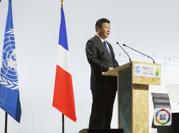 習近平在巴黎出席氣候變化巴黎大會開幕式并發(fā)表題為《攜手構(gòu)建合作共贏、公平合理的氣候變化治理機制》的重要講話。