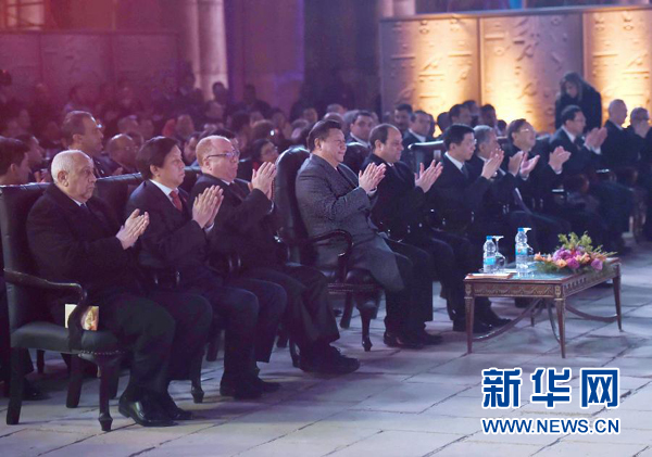 1月21日,國家主席習(xí)近平和埃及總統(tǒng)塞西在古老的盧克索神廟廣場共同出席中埃建交60周年慶祝活動(dòng)暨2016中埃文化年開幕式。新華社記者張鐸攝