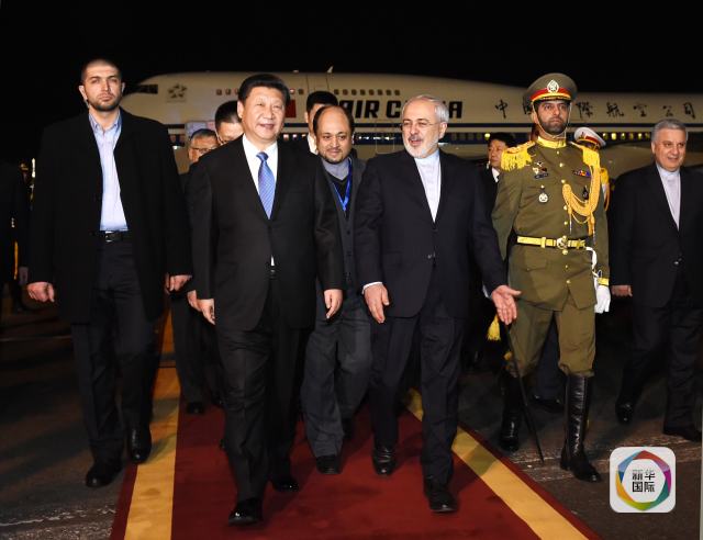 新華網北京1月24日電 1月22日,國家主席習近平乘專機抵達伊朗首都德黑蘭,開始對伊朗進行國事訪問。這是在梅赫拉巴德機場,習近平受到伊朗外交部長扎里夫等熱情迎接。(新華社記者饒愛民攝)