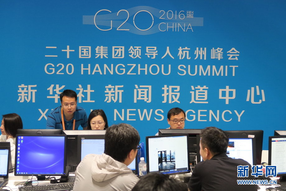 二十國集團工商峰會(B20)于9月3日至4日在杭州舉辦。作為G20機制的重要配套活動,B20是各國工商界參與全球經濟治理和推動世界經濟增長的重要平臺。圖為工商峰會開幕當天,新聞中心內記者忙碌的身影。新華網 陳競超 攝