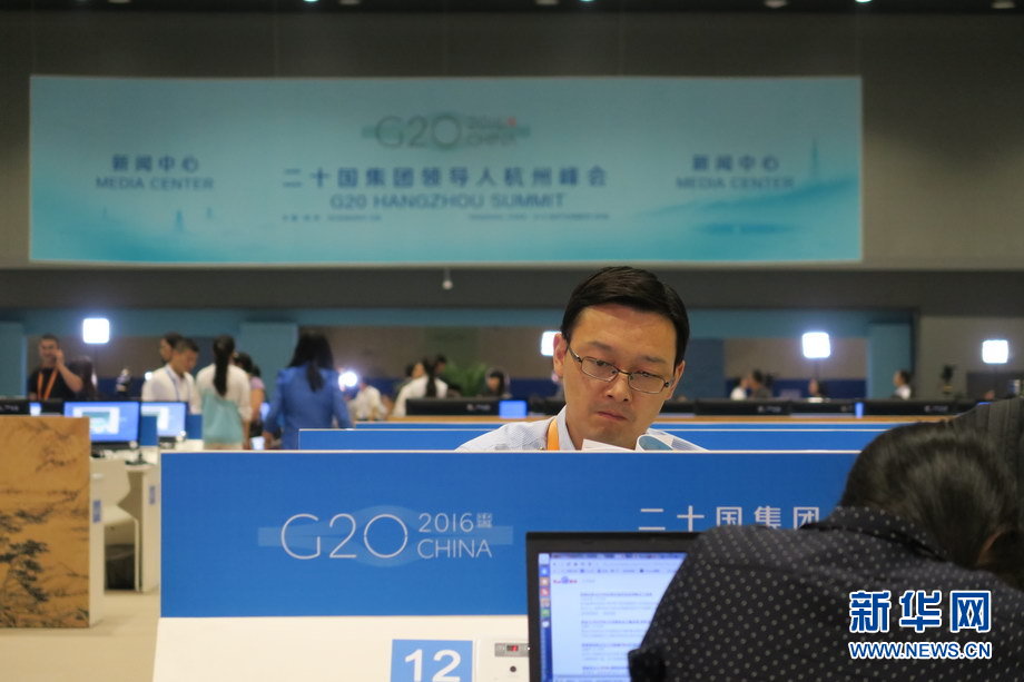 二十國集團領導人第十一次峰會9月4日至5日在浙江杭州舉行。峰會新聞中心一派繁忙景象,境內外各路媒體記者使出“洪荒之力”,實時報道峰會動態。新華網記者 陳競超 攝