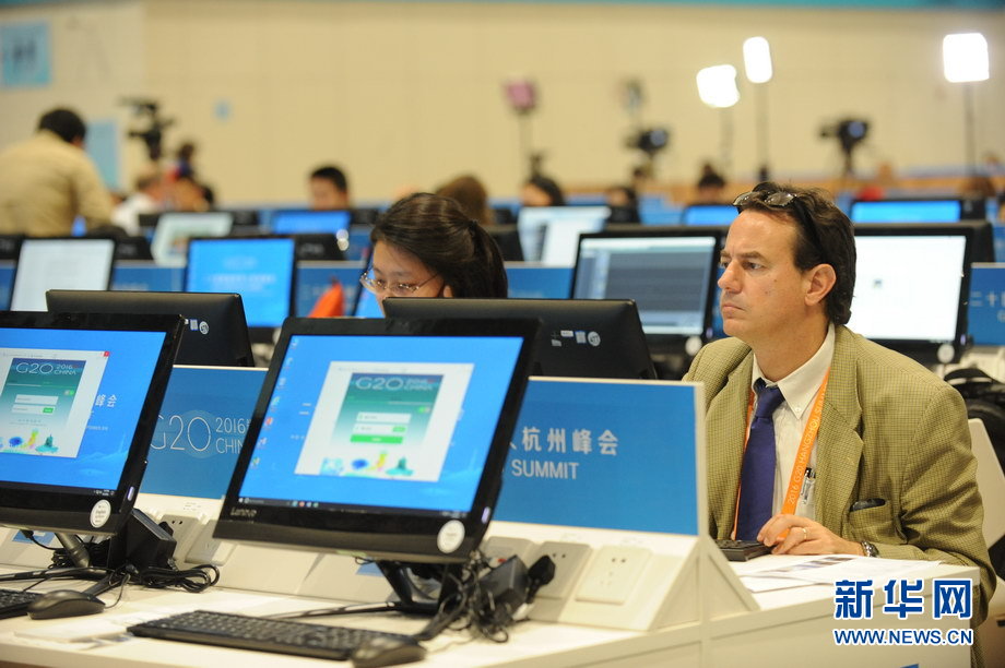 二十國集團(tuán)領(lǐng)導(dǎo)人第十一次峰會9月4日至5日在浙江杭州舉行。峰會新聞中心一派繁忙景象,境內(nèi)外各路媒體記者使出“洪荒之力”,實(shí)時報(bào)道峰會動態(tài)。新華網(wǎng)記者 陳競超 攝