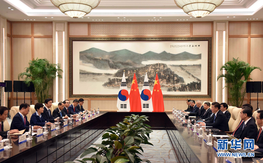 樸槿惠表示,很高興來到在韓中關(guān)系史上有重要意義的杭州見到習近平主席,當前兩國關(guān)系正按照兩國元首確定的方向高水平發(fā)展,并帶動了地區(qū)繁榮。發(fā)展韓中友好是大勢所趨。韓方高度重視對華關(guān)系,致力于深入推進基于互信的兩國關(guān)系。雙方要以明年韓中建交25周年為契機,深化兩國戰(zhàn)略合作伙伴關(guān)系。韓方支持中方為成功舉辦二十國集團領(lǐng)導人杭州峰會所作努力。
